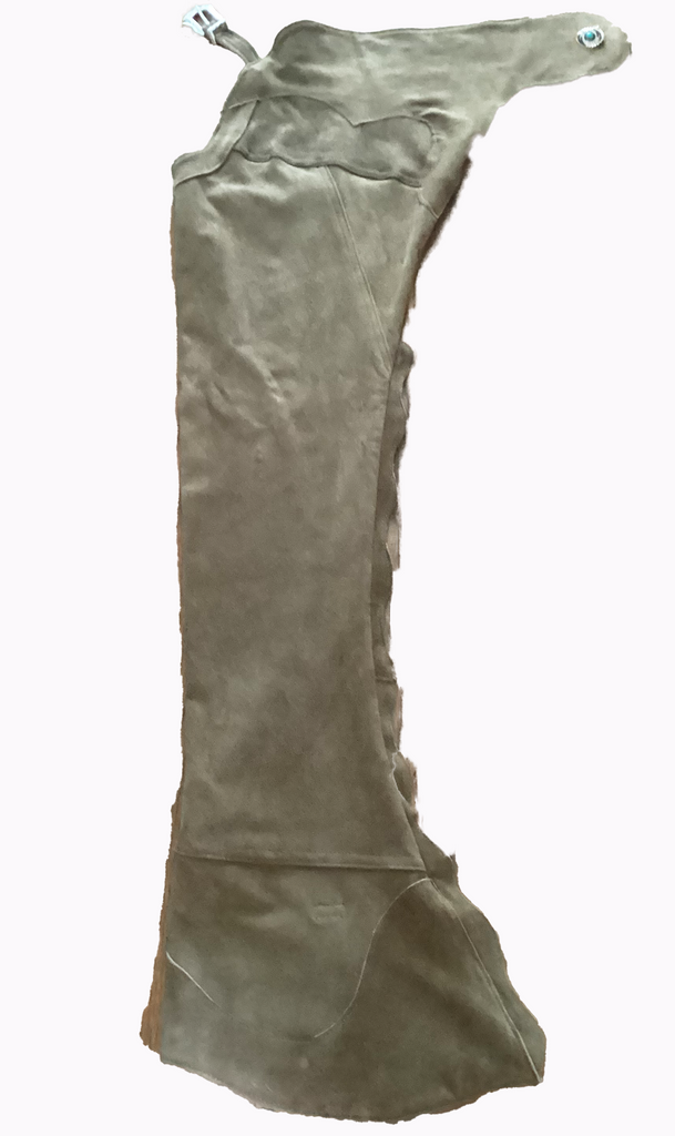 All EQ-Wear Chaps are made of premium stretch leather. They breathe, they look great and you won't need a posse to get them on. They just pull on and buckle up. Featured with tie downs, to keep them in place riding or up when walking, and spur holes. Made of stretch, washable lambskin, they are light weight but heavy duty when it comes to keeping you tight in the saddle. Made in a variety of colors, S through L and in Regular and Tall lengths. Our scallops are made from the matching leather material. We can customize size, colors and more decoration by request. Lovingly made for your in Tulsa, Oklahoma.