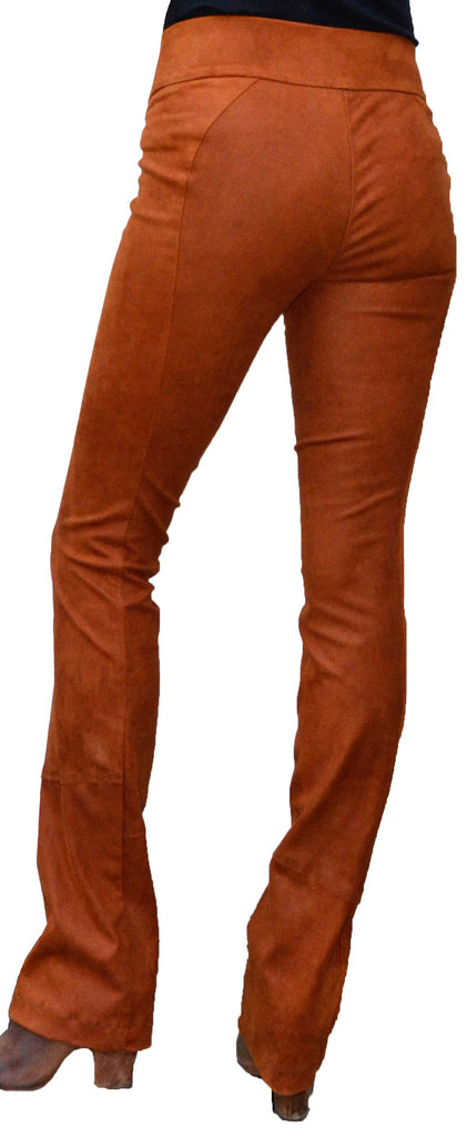 EQ Wear uses our stunning stretch leather with the velvet and destroyer finish in this versatile pant. Pull on pant with 2 ½" elastic waistband, our secret waistband pocket and a long leg with a modern boot cut finish. For those who want a longer, leaner look, try the Bootleg.